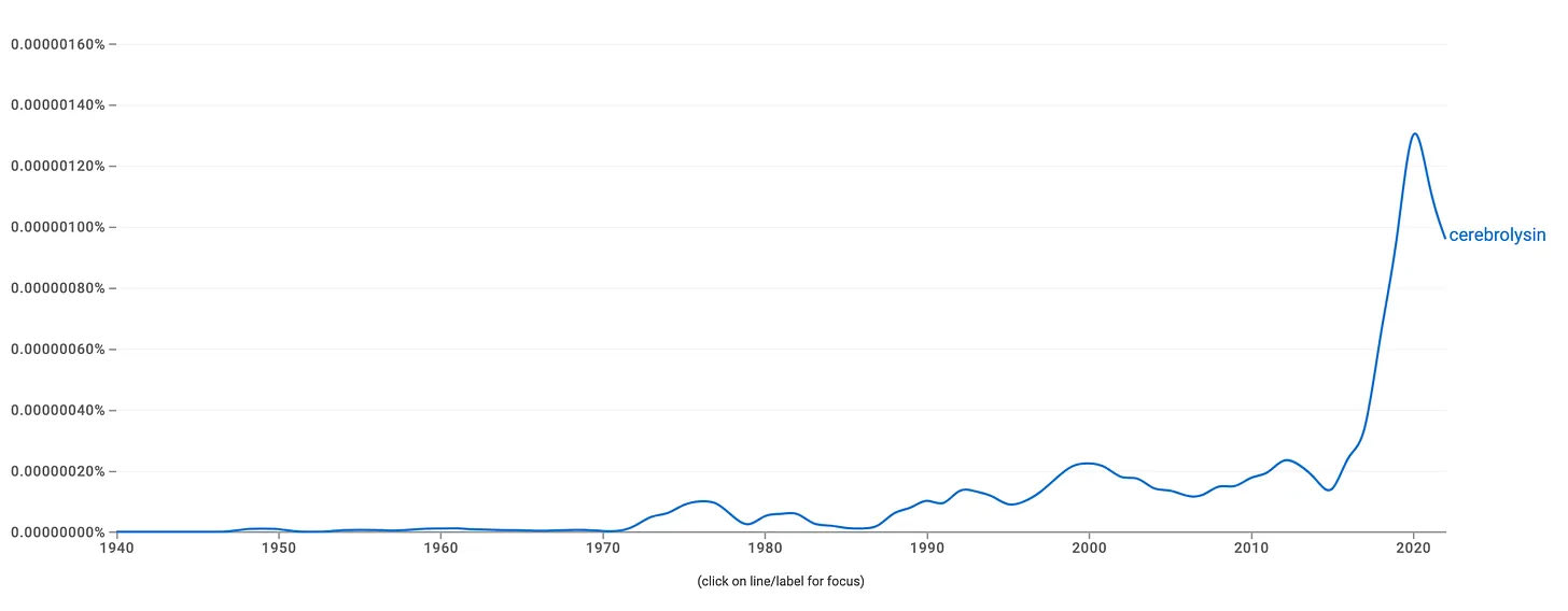 For some reason, interest in Cerebrolysin increased dramatically after 2014. This may be due to an advertising campaign by Ever Pharma, including the creation of cerebrolysin.com in 2017.