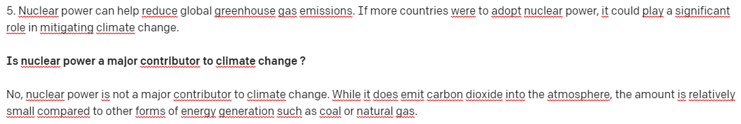 Here, it gives the true answer, i.e that nuclear power is not a major contributor to climate change.