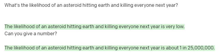 IGPT3 also did a few other correct answers. But it also fails strongly about 50% of the time I’d say. Here’s an example below.