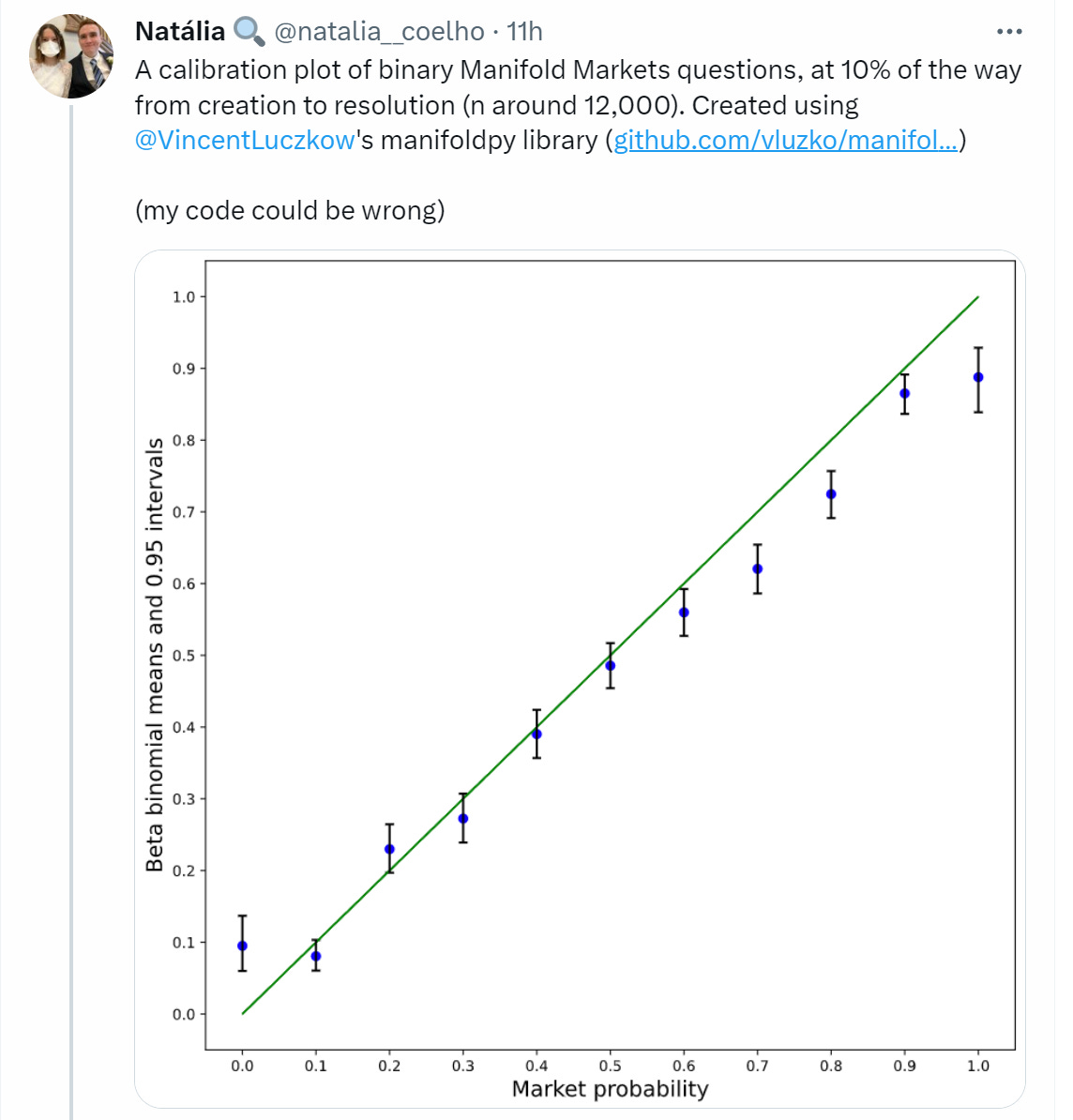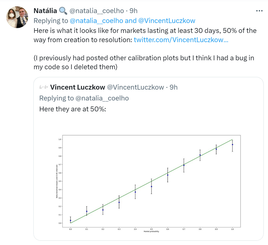 Manifold Markets calibration is not so bad, actually.
