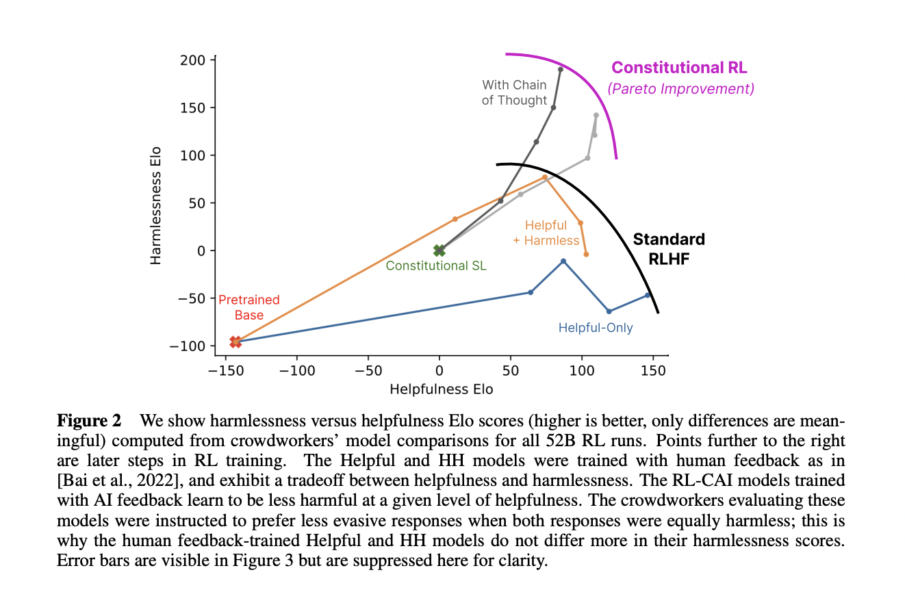 On the one hand, cool, on the other, the abstract is deceptive because it tries to claim that the AI trained is “harmless but nonevasive AI assistant” but what the paper in fact claims is that Anthropic trained an AI that has a higher harmlessness and helpfulness score and thus offers a Pareato improvement over previous models but is not definitely across some bar we could say is harmless vs. not-harmless or helpful vs. not-helpful. As much is also stated in the included figure.