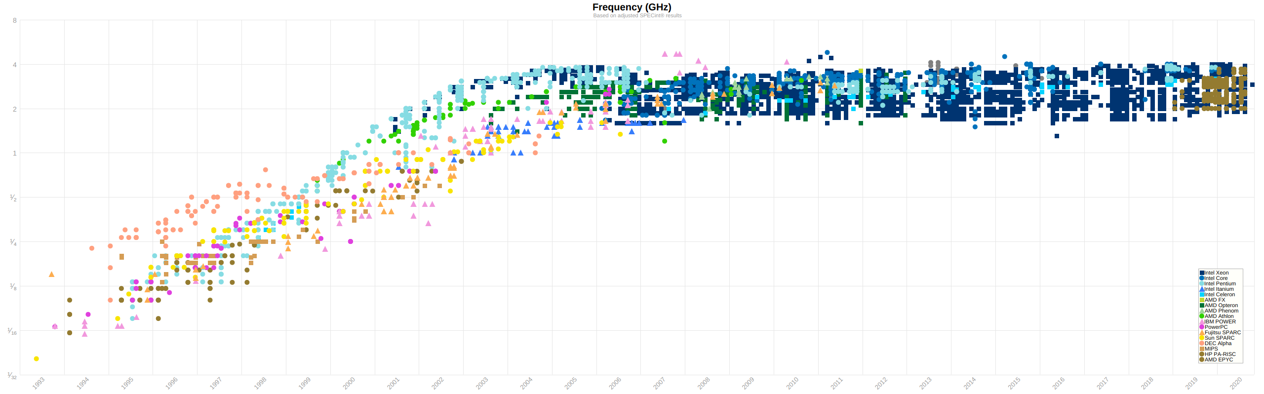 If there is any key thing to learn from the failure of Dennard scaling, it would be that exponential trends based off of physical scaling can end abruptly. As a result, transistors now only get marginally faster each process node.