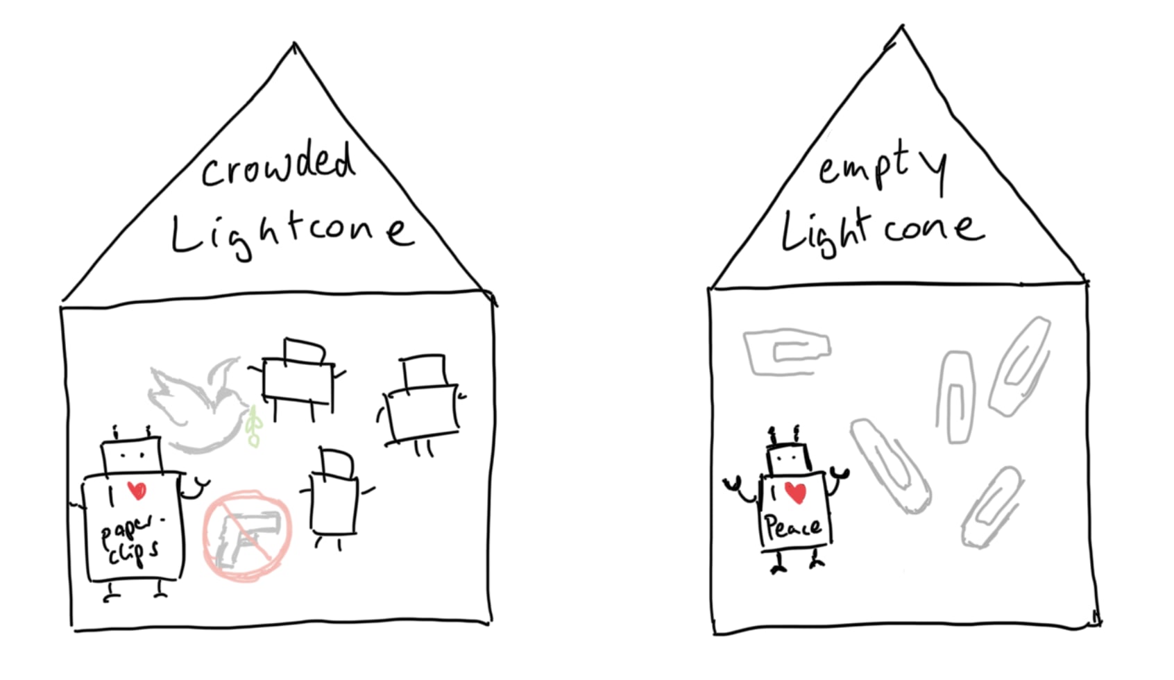 We can also imagine much more exotic values that have diminishing returns in utility within light cones but not across light cones: For example, an agent might care about there being at least one elephant in as many light cones as possible. However, on the face of it, these values seem likely to be rare and hard to predict. On the other hand, the agents who hold them would be very attractive cooperation partners!