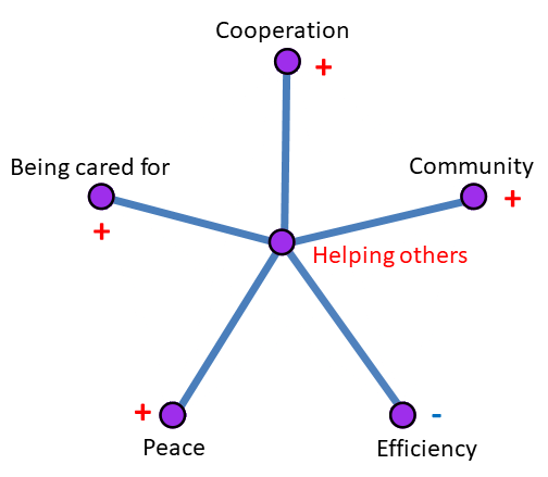 This has a “same identity” problem, just as the “praise God” has, but it’s milder: people cooperate far more often than they sing praises for days on end. The bigger problem is the implicit assumption that when people do things for other people, this automatically has the same efficiency as markets or other more selfish coordination mechanisms. People helping each other is not supposed to leave people worse off.