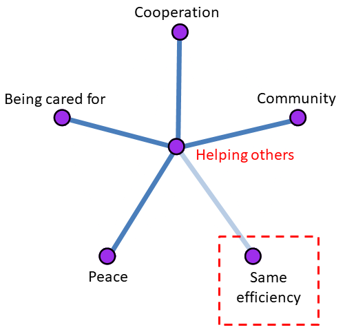 If I was aware of that flaw AND still had that preference (which I mildly do, in practice), then I would have a non-wrong preference. Which doesn’t mean that you have to agree with me, for you have your own preferences, but means that my preference is no longer “wrong” in the sense of this post: “Same efficiency” becomes the foreground variable “Efficiency”, one that is actually negatively activated in this model, but not enough to overcome the positive activation of the other variables: