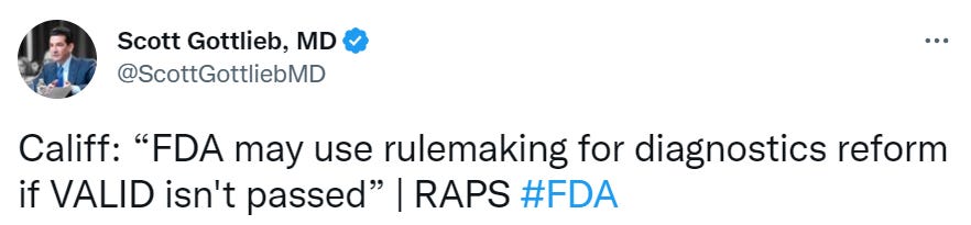 With that in mind, the FDA is planning on ramping up its War on Knowledge. Diagnostic tests are its latest enemy. They want Congress to pass a law explicitly allowing them to prevent such tests, and are threatening to do it themselves anyway if Congress decides not to cooperate. They will simply use ‘rulemaking.’