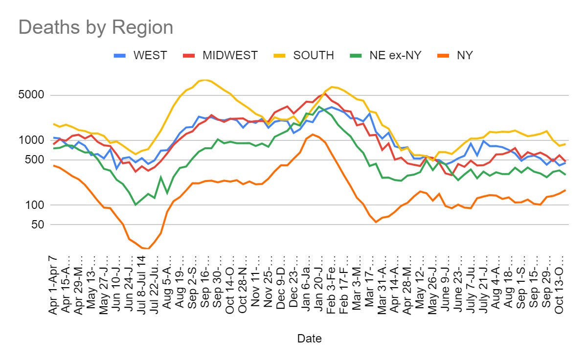Case bump in the South seems to purely be a reporting glitch in North Carolina. I am choosing not to manually fix it.