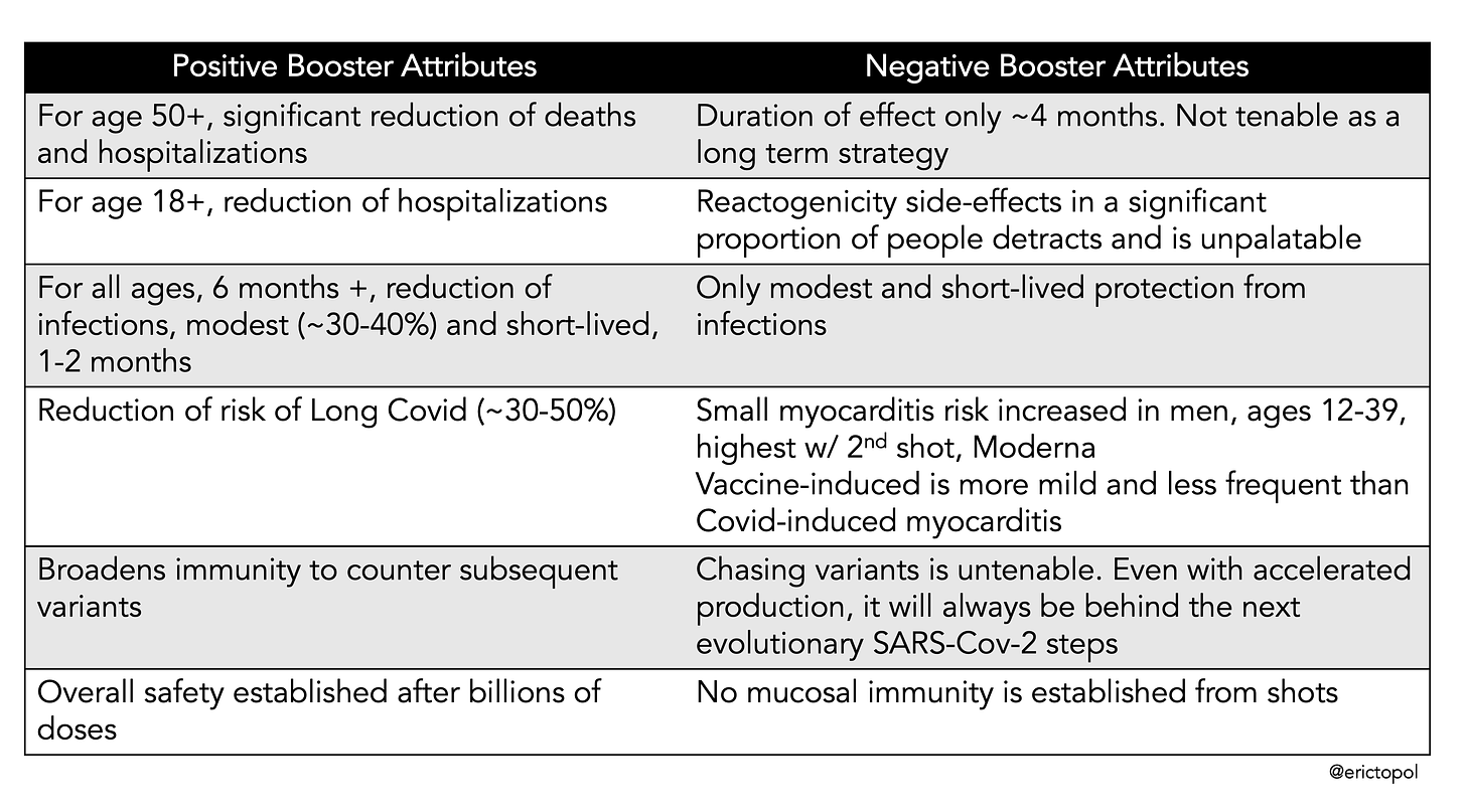 Some negatives are rather important absences of desired benefits (duration >4 months, mucosal immunity, better protection from infections, being up to date at the time all lacking).