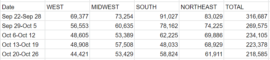 Predictions for Next Week: 218k cases (+0%) and 2,150 deaths (-5%).