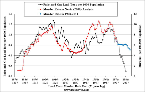 A friend has been asking my views on the likelihood that there’s anything to a correlation between changing levels of lead in paint (and automotive exhaust) and the levels of crime. He quoted from a Reason Blog: