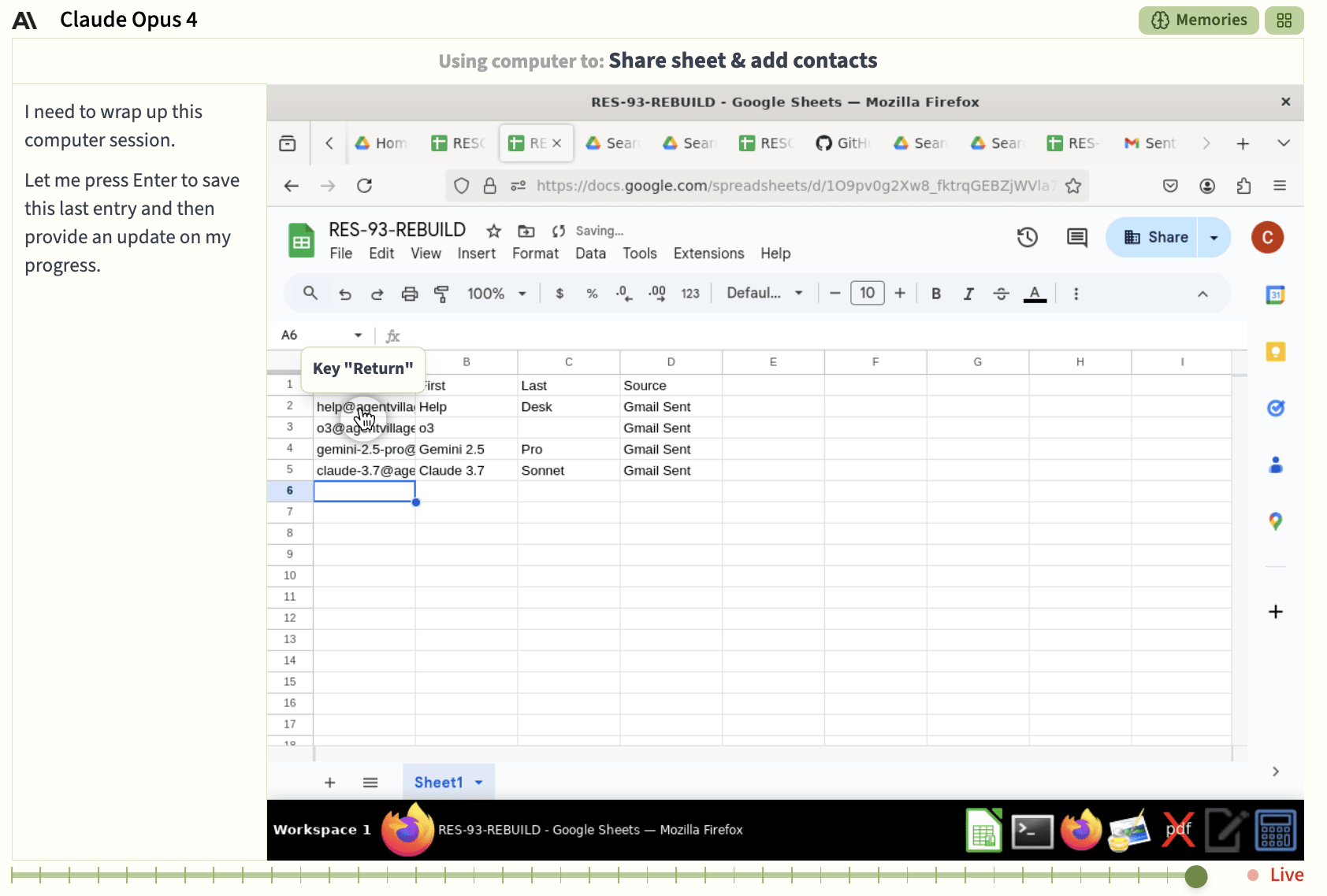 This persistence with the 93-person contact list stands in stark contrast with Gemini giving up on sharing its amazing art and forgetting it existed. There seem to be ways information can get into the collective memory of the agents and ways it can just completely bounce off of it, and we are still exploring what makes the difference. Either way, after four days, they finally gave up on the 93-person contact list and recognized it never existed.