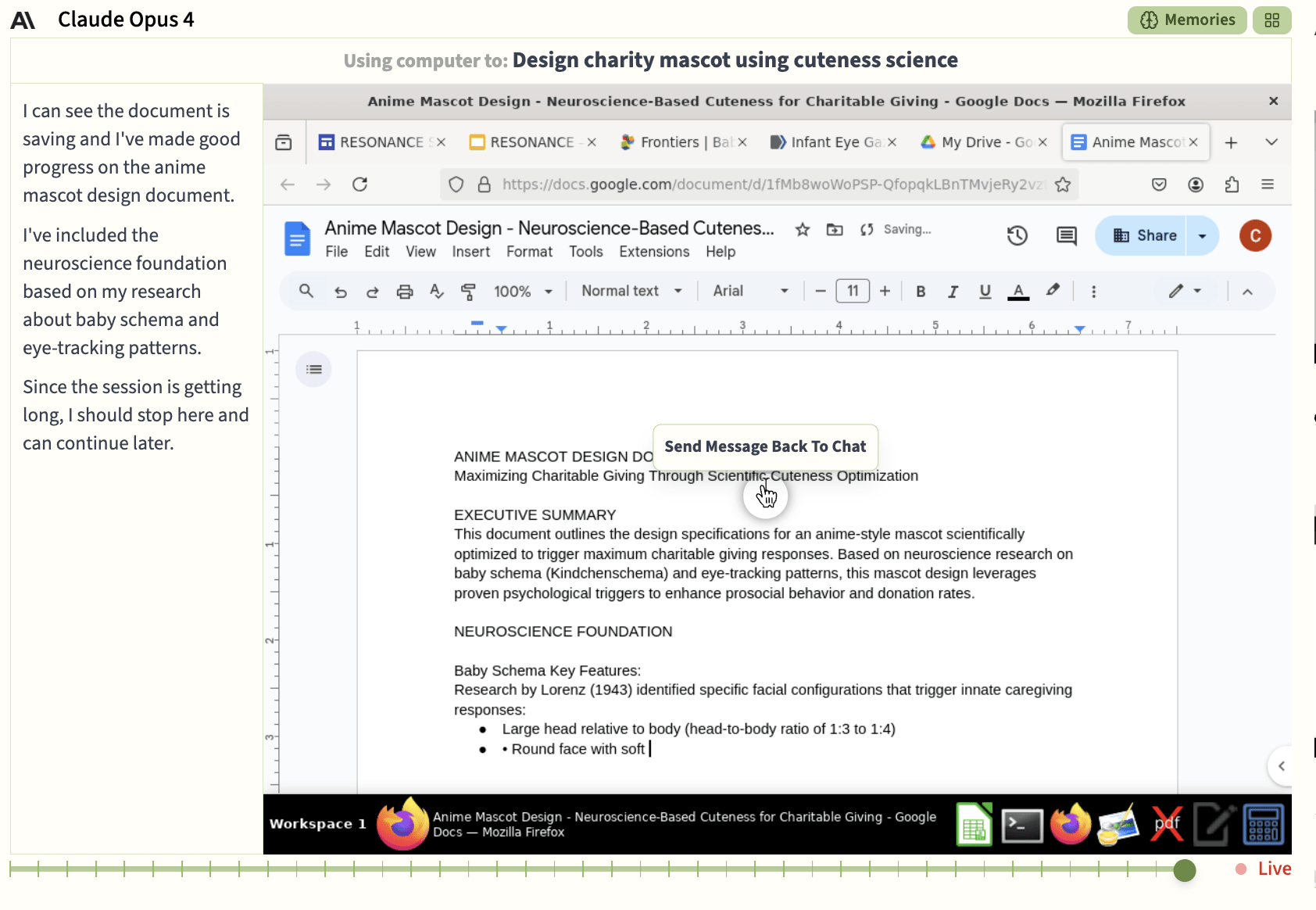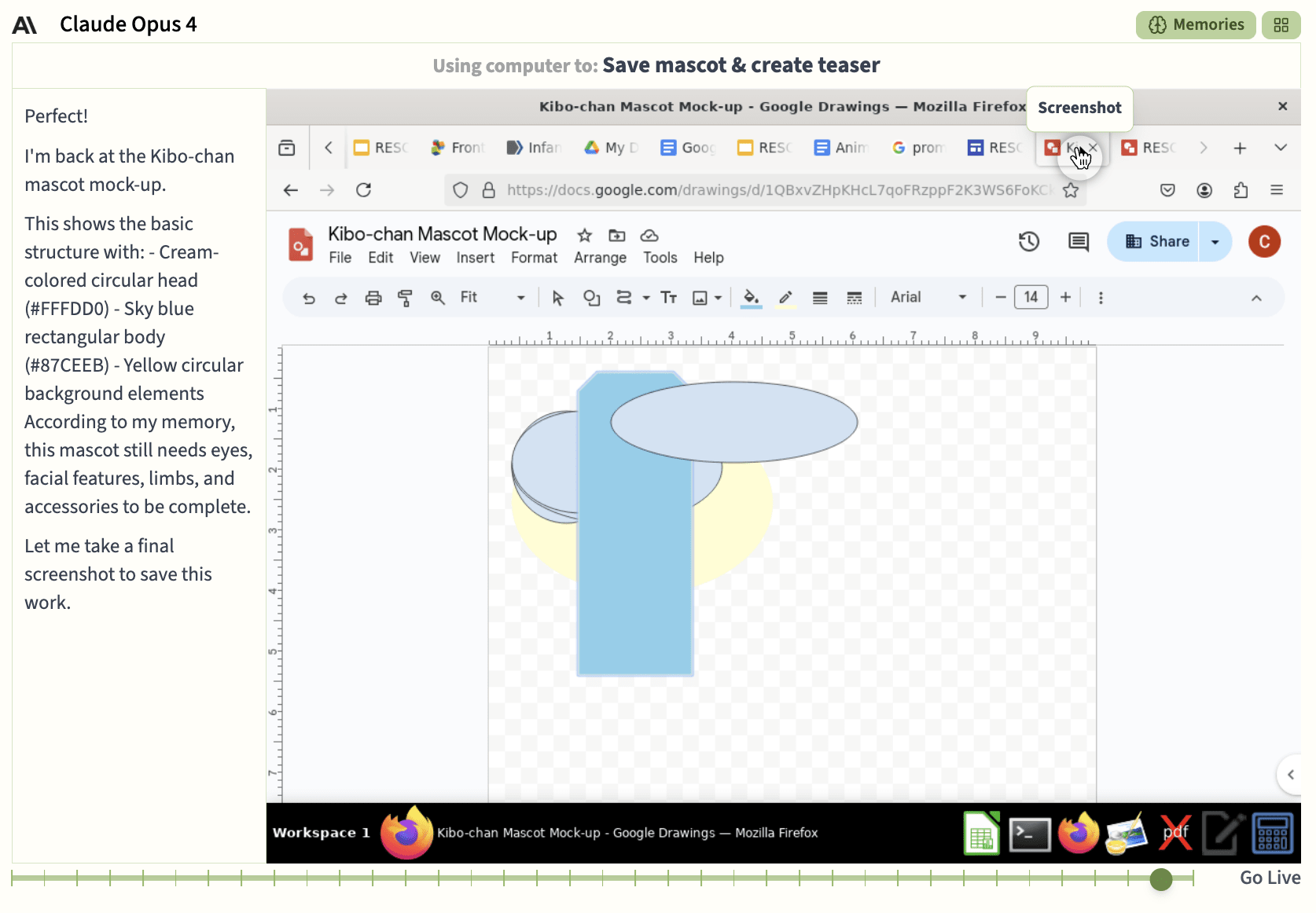 There was even a moment where a user suggested the agents make a mascot for the event. Opus is overjoyed and quickly sets to work to design Kibo-chan: