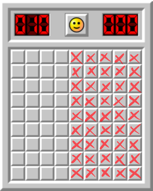 I think that’s important to know. But there are many tiles you might click on first. Maybe all of the mines are on the right, and we understand the obvious pitfalls, and so we’ll just click on the left.