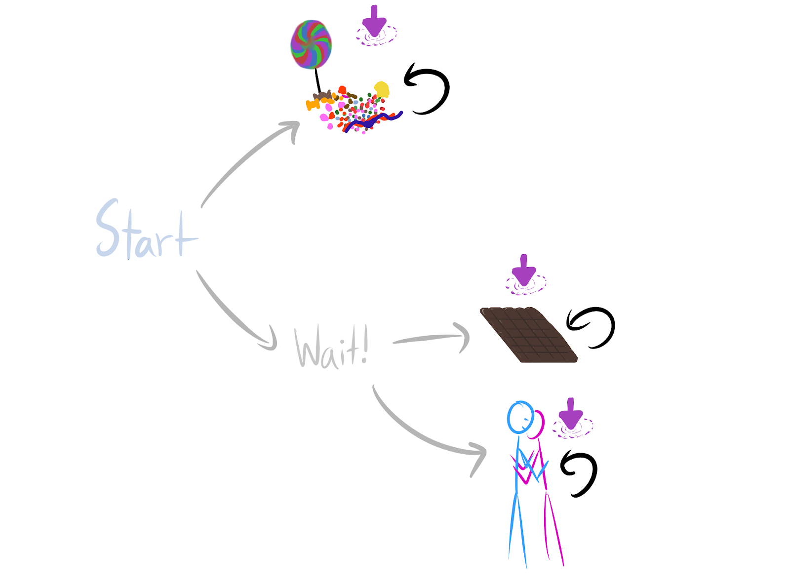 , let a1 go to candy and let a2 go to wait. This satisfies the criterion:Wait!