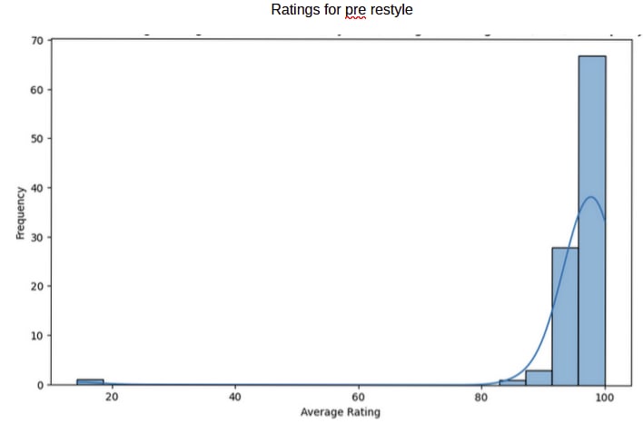 In retrospect, I should have used only the subset whose restyled version made it into the restyled dataset, but I don’t think this is practically significant.