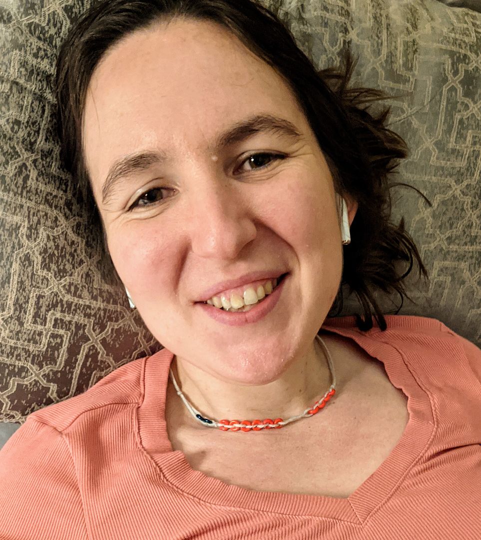 I made this necklace according to very roughly this picture, using knitting wool and beads I bought at one point to use as virtual in-house currency and now found in a box in my room. It works well! The beads don’t shift unless I move them, which is easy and pleasing. It seems clearly more convenient than my phone. (Plus, I can show off to those in the know that I have 4 or 6 or 24 or 26 of something!) I am also for now reminded when I look in a mirror to consider whether I can get a point, which is currently a plus.