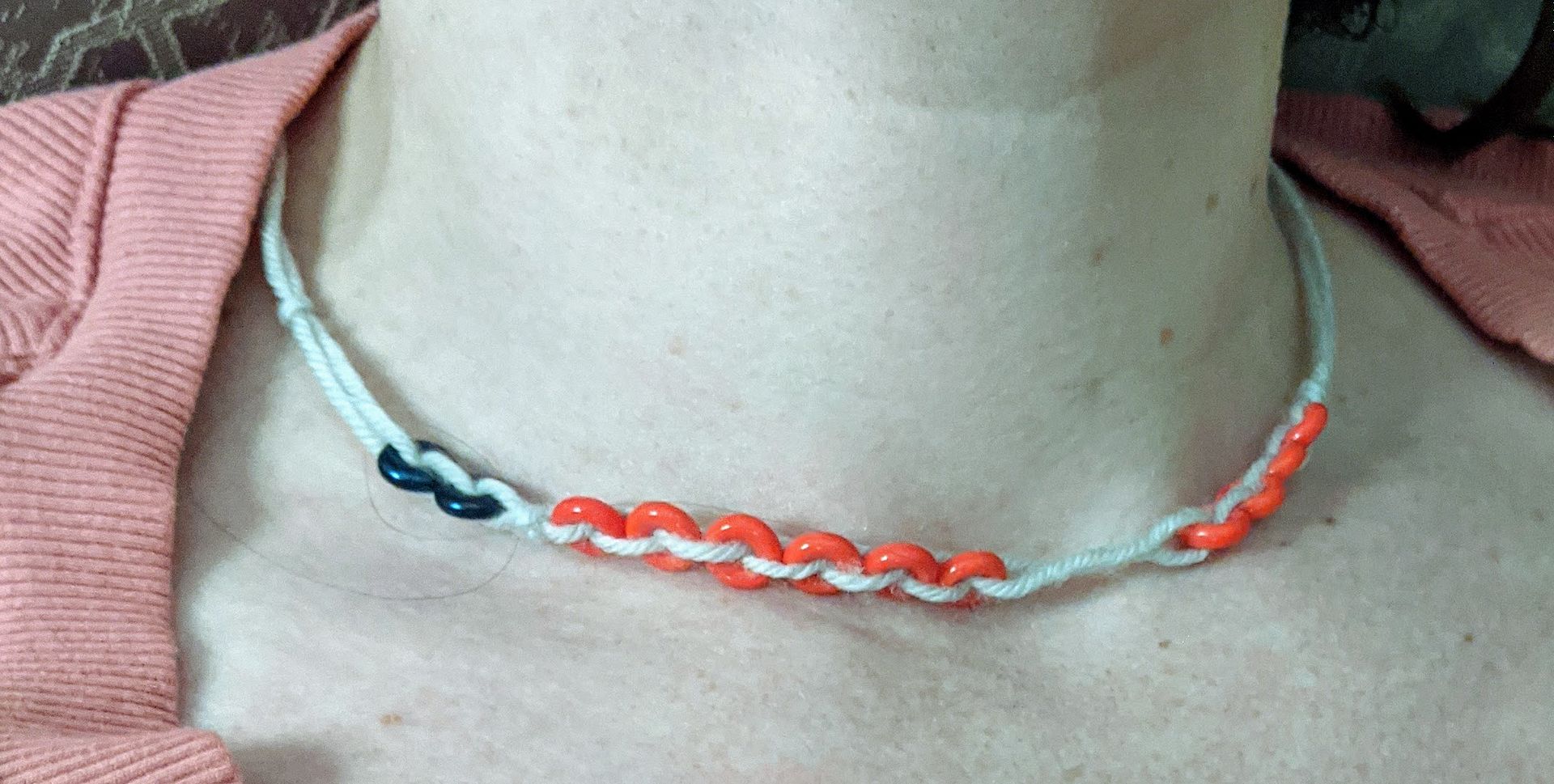 In theory, putting beads in the normal way on a single strand could also work, if the diameter of the strand and the hole size of the bead were well matched. (You’d want fray-proof string for threading that not to be a huge pain, though.)