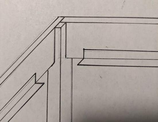 The goal is to make sure I know what all the lines are and about where things fit together. Sometimes I need to do a few rounds of these, but they’re fast enough this isn’t much a problem. Lines that are vertical in real life go up and down, lines that are horizontal and perpendicular to me go across the page, and lines that would be coming out of the page instead go down and to the left.