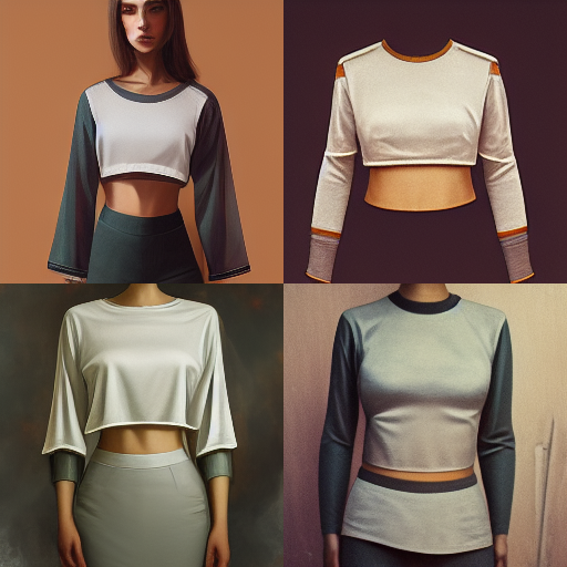 In a lot of generations, the model simply ignored that I asked for medium length sleeves at all, so I have shown generations where it did not ignore this. We see in the top right example, that the model seems to be “hedging its bet” by showing long sleeves rolled up to look medium instead of committing to real medium-length sleeves.