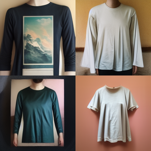 Even the top-right generation of the first set of generations was quite promising, but hedged its bets by making slightly-short long-sleeves and slightly-long short-sleeves on the same t-shirt. The most fitting seems to be the top-right of the third generation shown, which is only slightly distorted, or the bottom-right one from the fourth generation shown, which is slightly on the shorter end but I think passes.