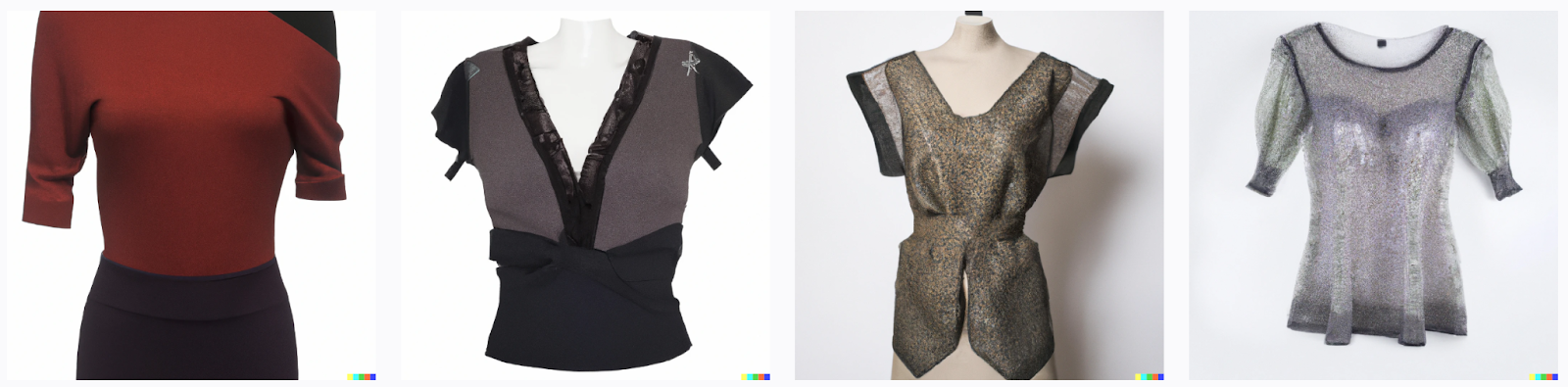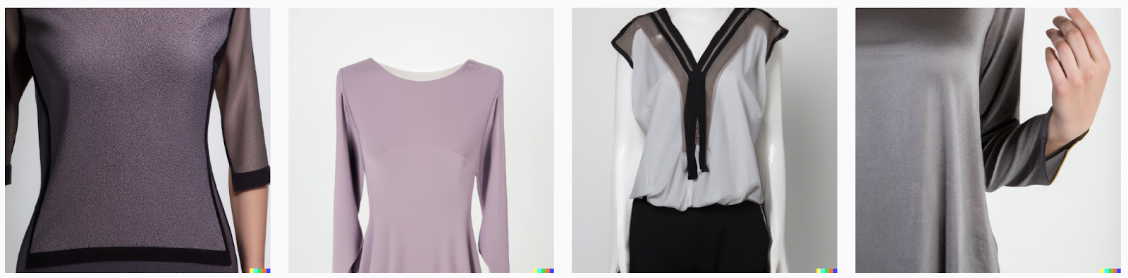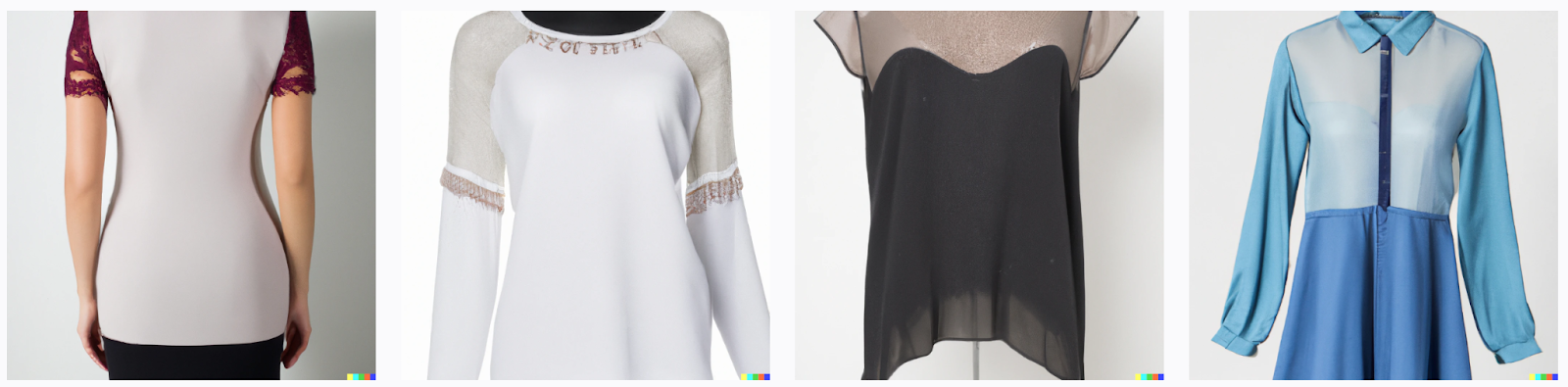 The model seems particularly good at generating medium-length sleeve blouses compared to DALL-E 2 (see appendix B).