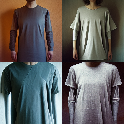 The two middle examples do show some generalisation to the task, and it seems to suggest that larger models do sort of converge to more human-like ideas, but still somewhat struggle when out of distribution. This short experiment does not quite prove generalisation though, since even though medium-length sleeve t-shirts are quite uncommon, there were likely some sample images in the dataset of medium-length sleeves, which might not indicate the model generalised to understand sleeve length on its own.