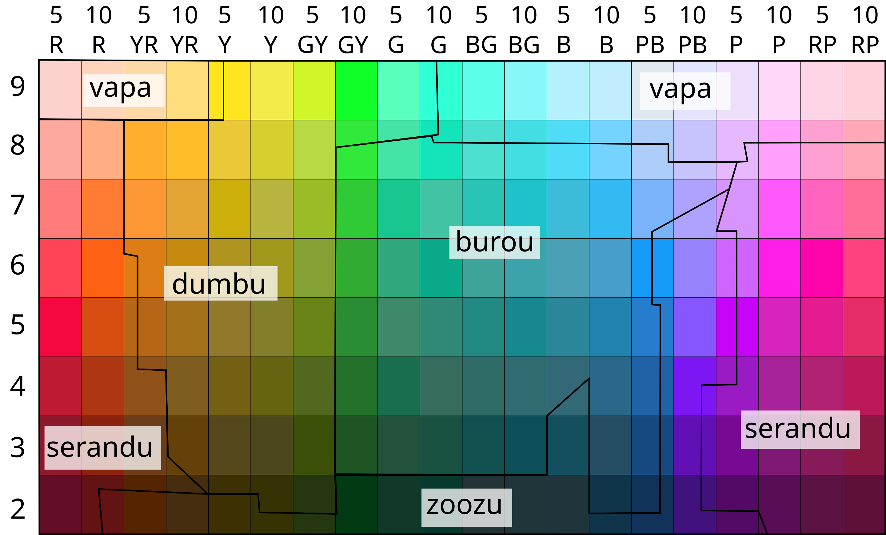 Colours are understood differently in different cultures. For example, in most cultures, there are a small number of colours that are given names: “Red”, “Yellow”, “Green”, and then from this extra colours are given names between these