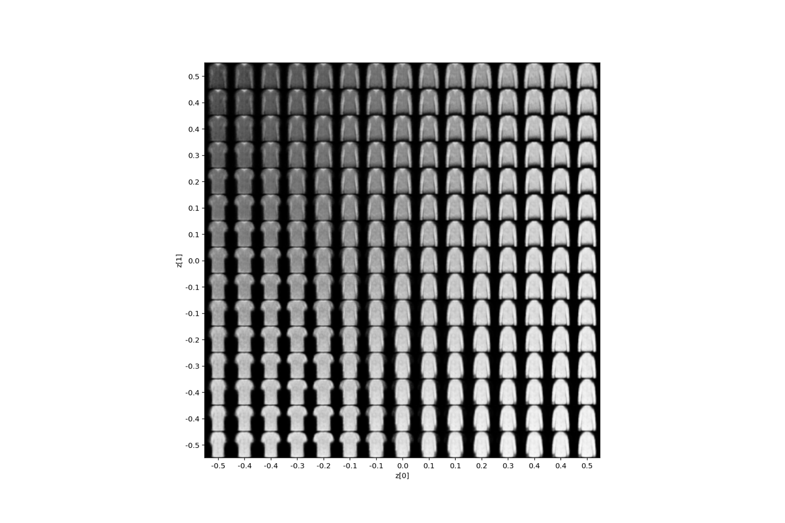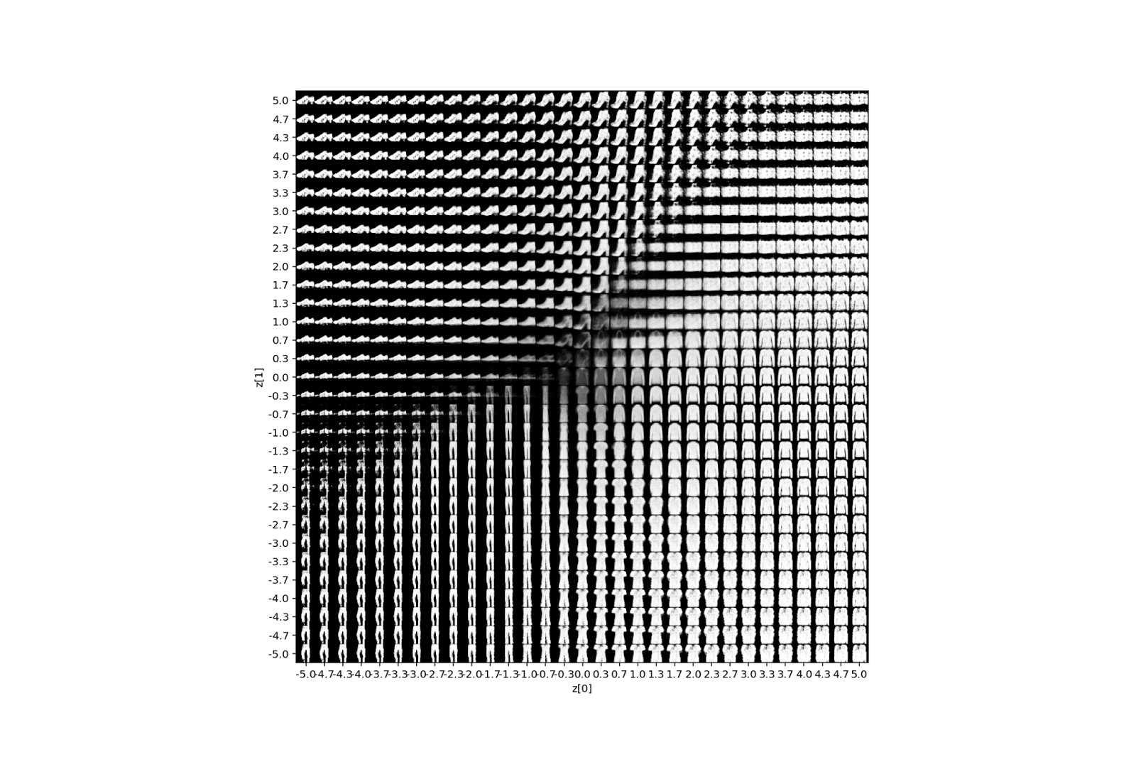 A Variational AutoEncoder (VAE) of ~1M Parameters was trained on Fashion-MNIST (discussed more here in a previous research sprint ) can encode slightly-blurry shapes for the different items of clothing in 2 parameters. This allows us to move, for example, between short-sleeve and long-sleeve tops. The way it does this is not the way a human might move between short-sleeves and long-sleeves.