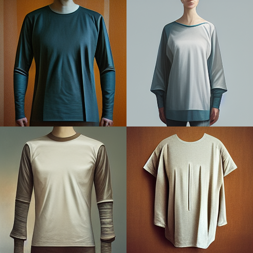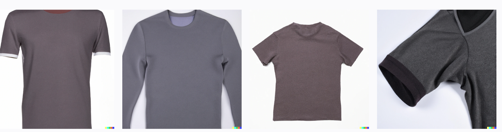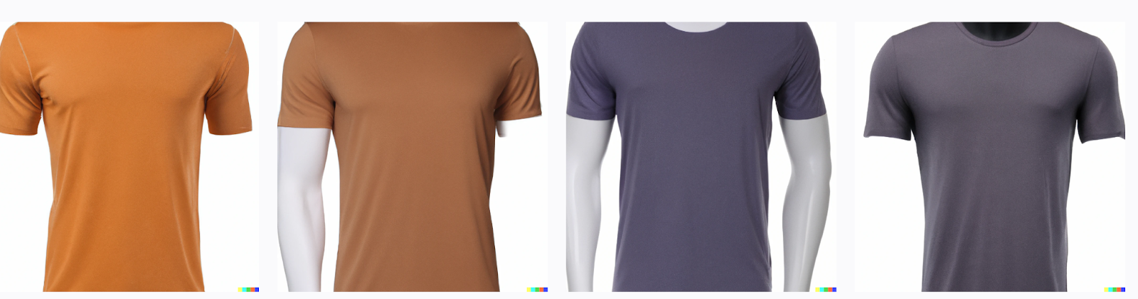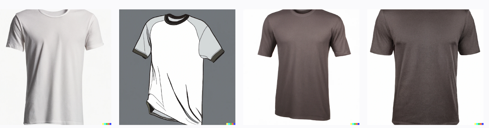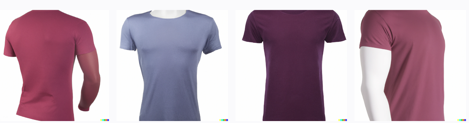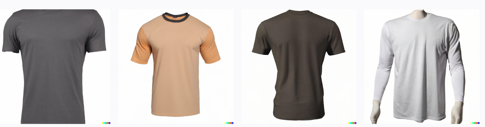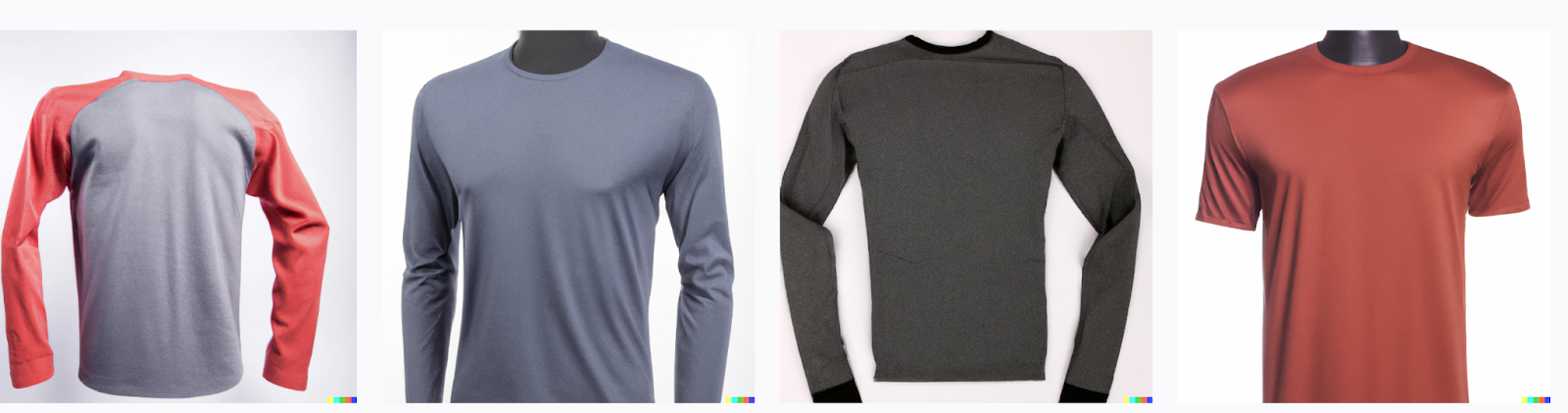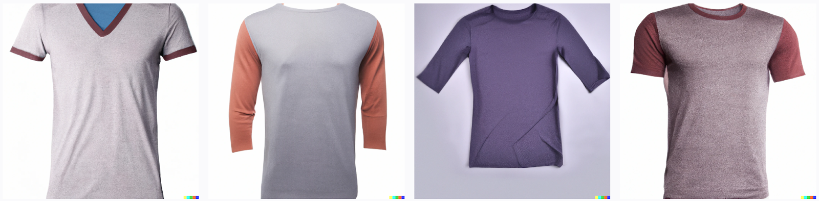 As a short test for this, I tried using DALL-E 2 and Midjourney. I searched for t-shirts with medium-length sleeves with various phrasings.