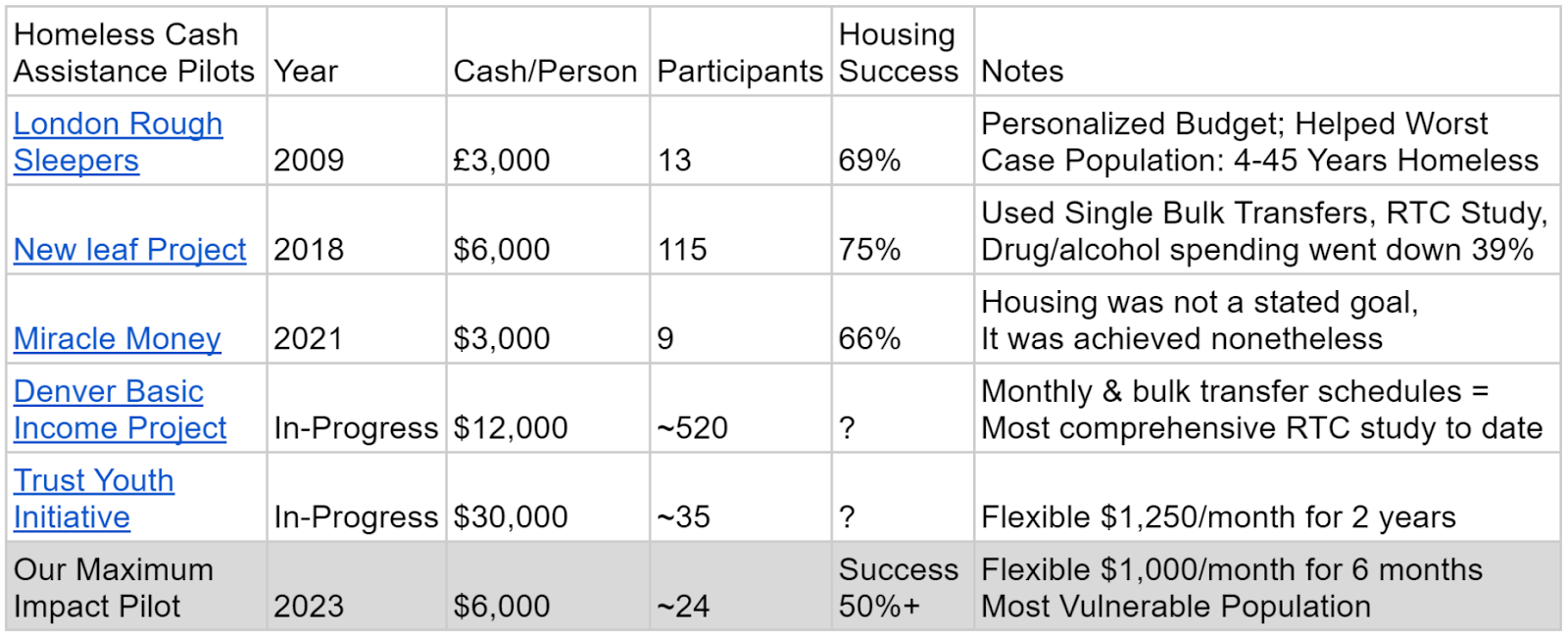 Overall, better research is needed, and we fully intend to produce highly consequential studies once we have the funding to launch a statistically relevant program. If we could get an EA statistician to look over the current homelessness research, they would be far more qualified than you or I to know just how much trust we should be putting in the research done so far. Do you know any?