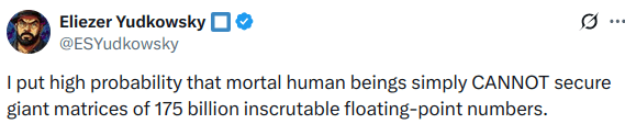 Yeah I don’t understand where Eliezer is coming from in that tweet (and he’s written similar things elsewhere).