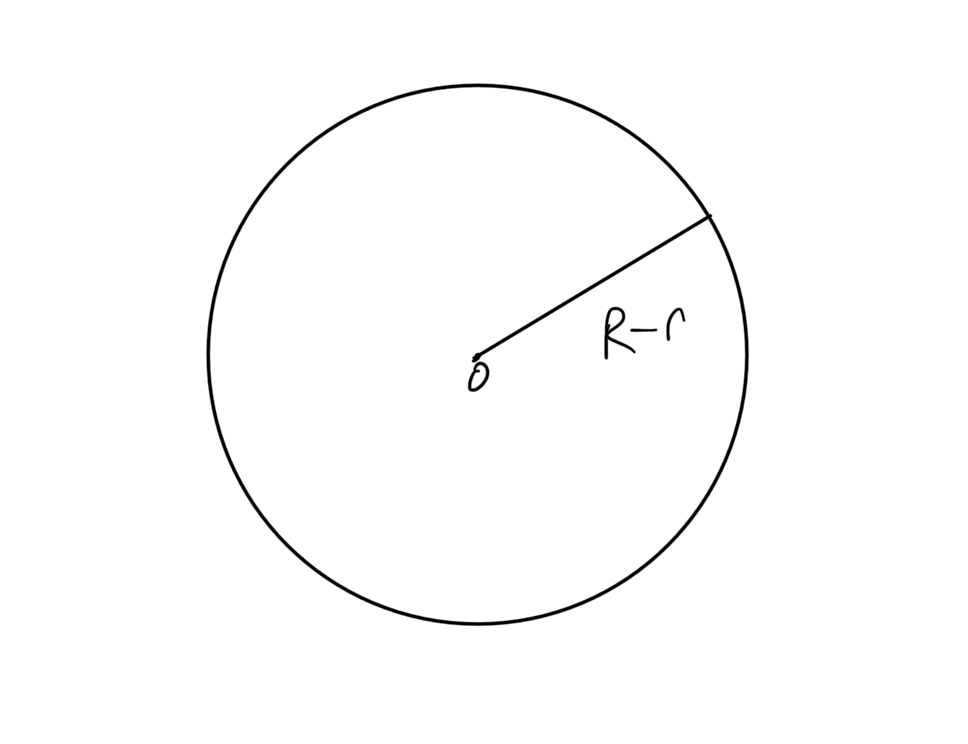 Imagine shifting the center in the picture along the radius by a finite amount (say the distance to the sun, or just watch this) but keep the boundary fixed. Then the length of the new radius is . But that’s almost as long as the original radius. . So moving the center is unobservable. So, it’s everywhere because you couldn’t ever observe that some radii are shorter than others without moving infinitely far to check, which is impossible. You’re not truncating the sphere so much as shaving it.
