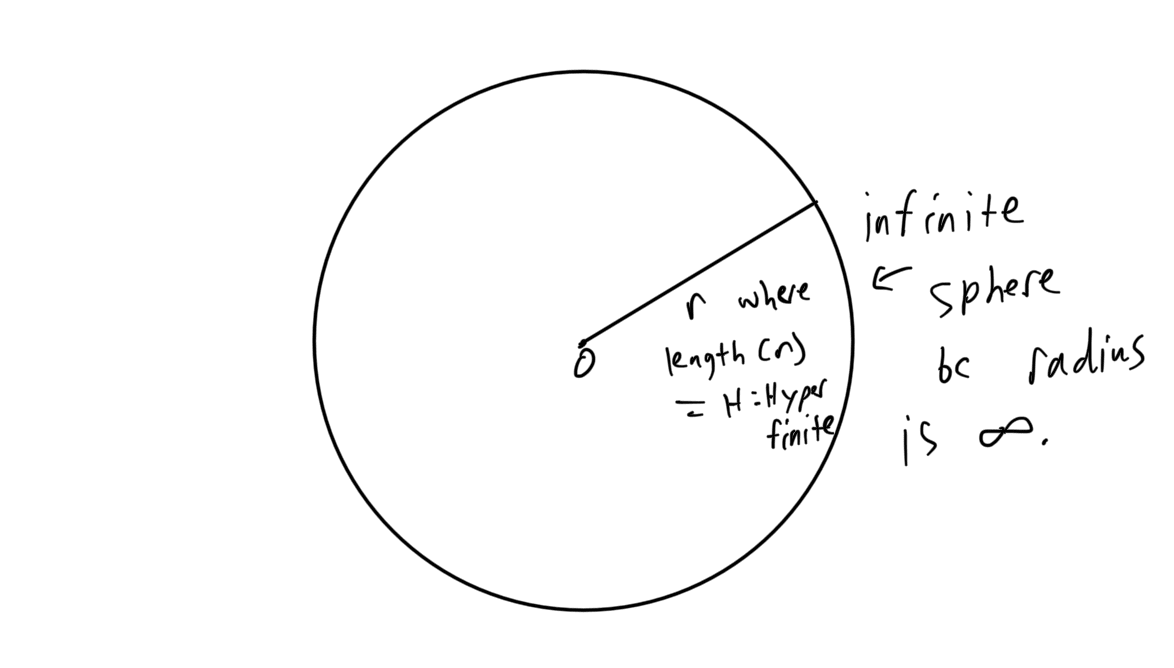 Imagine a Sphere with unlimited radius . TLDR, is a positive, infinitely big whole number. for all finite . These pictures are circles instead of spheres, but the analysis carries over unchanged.