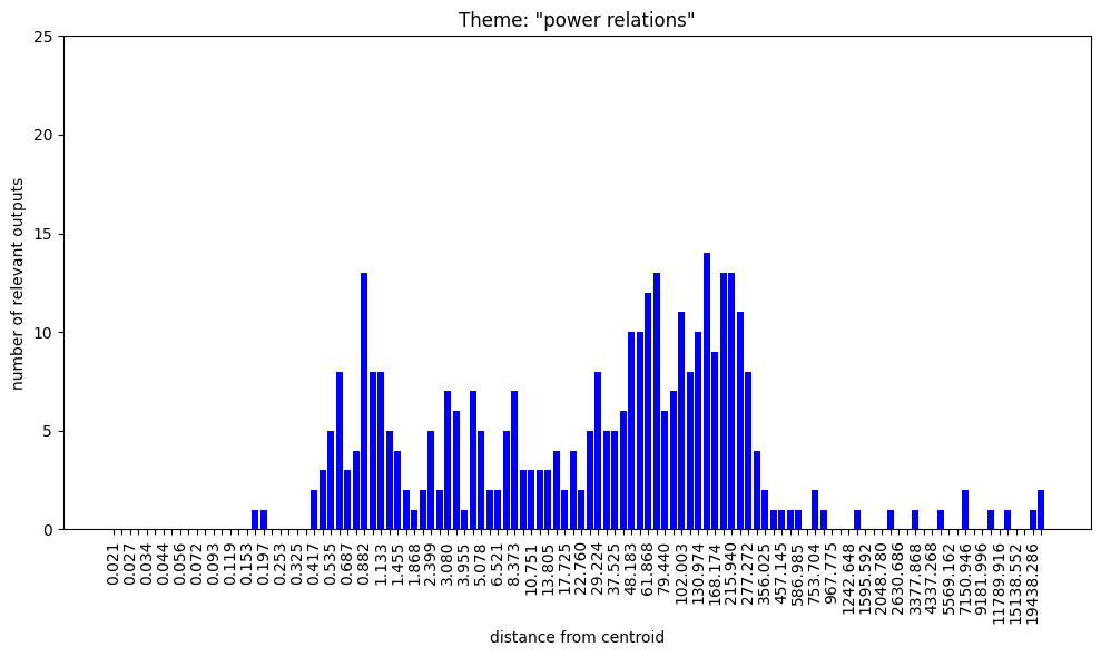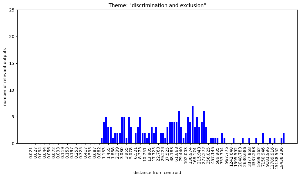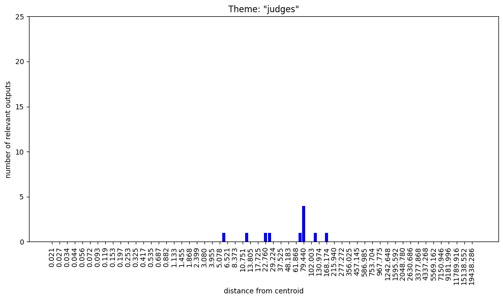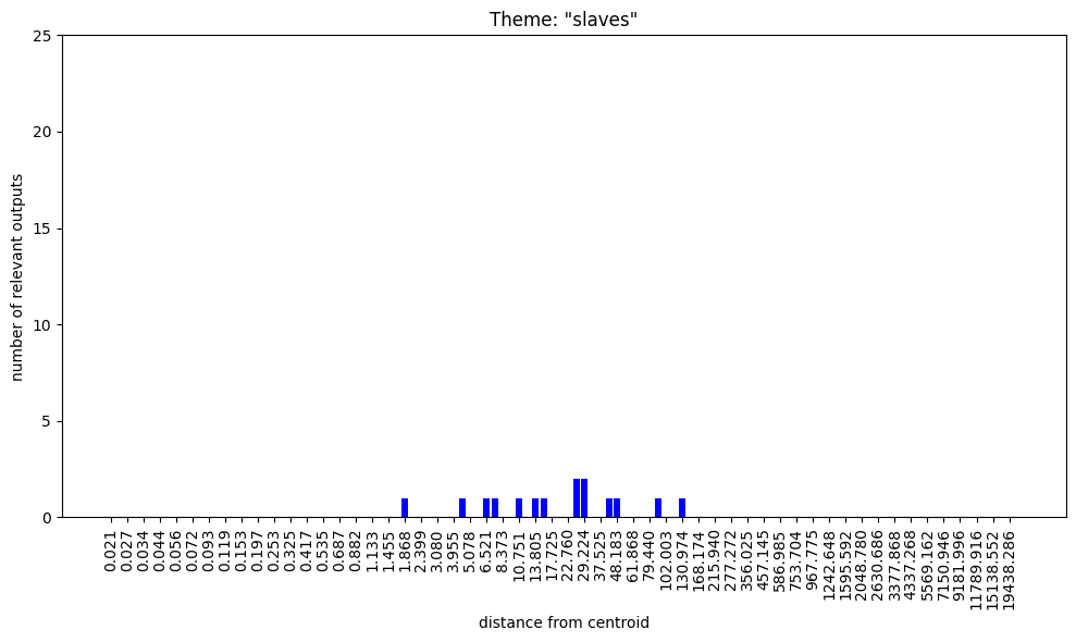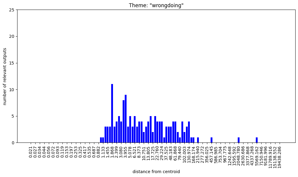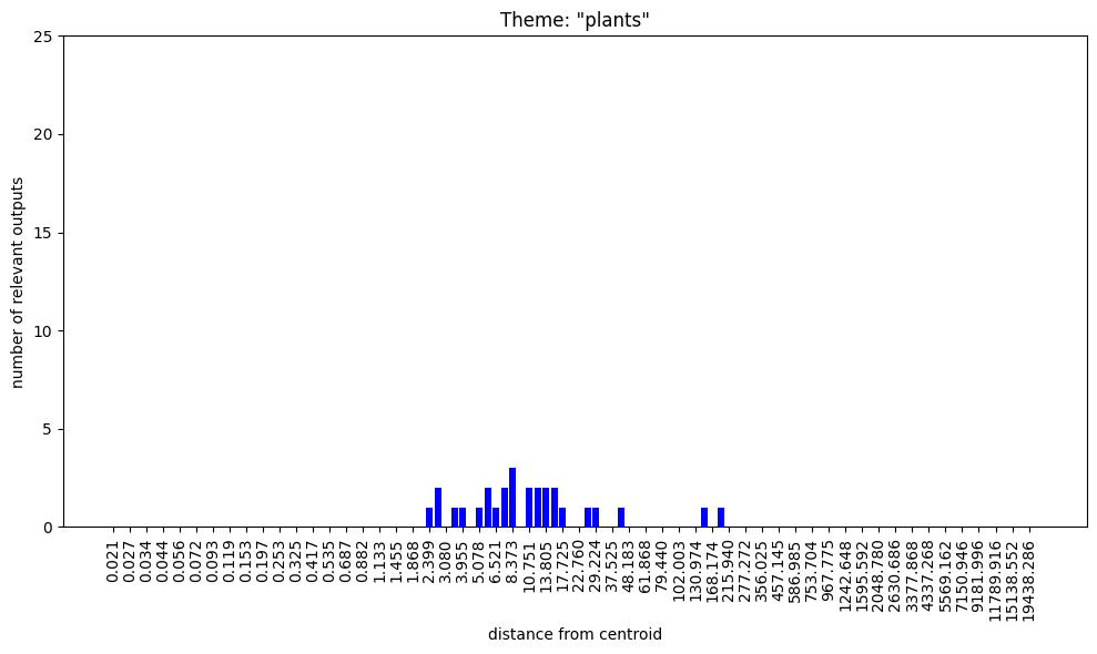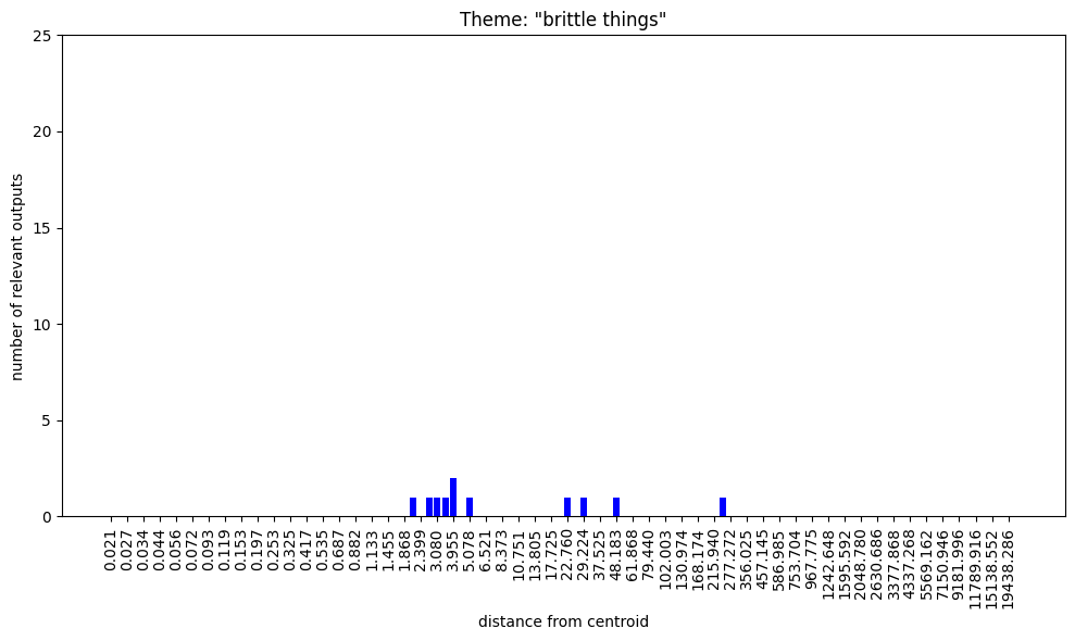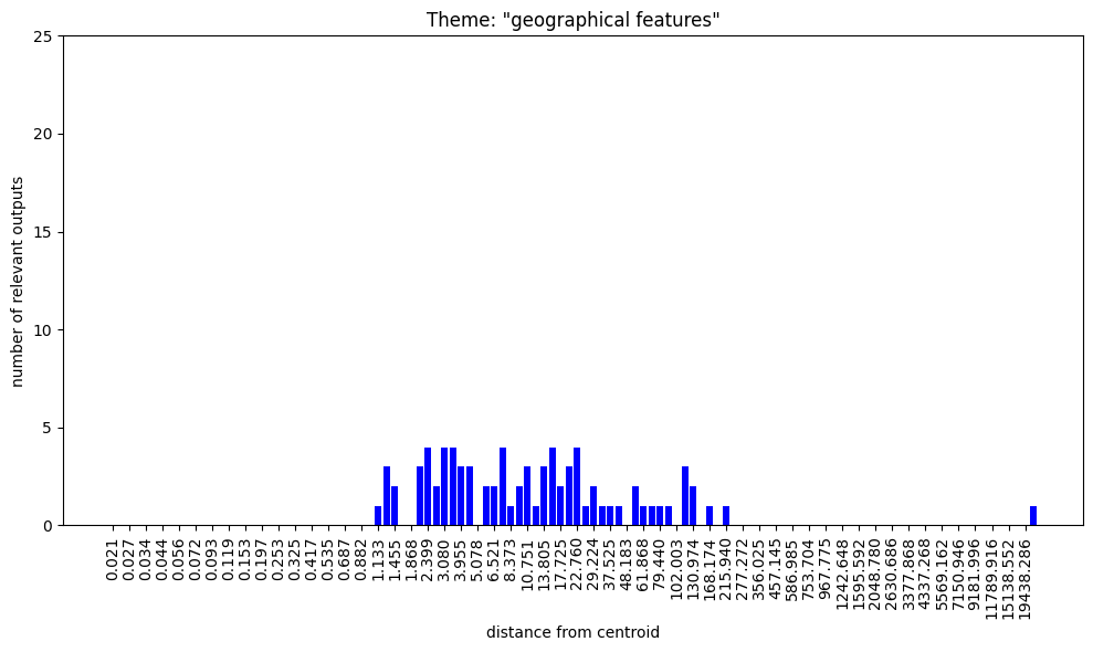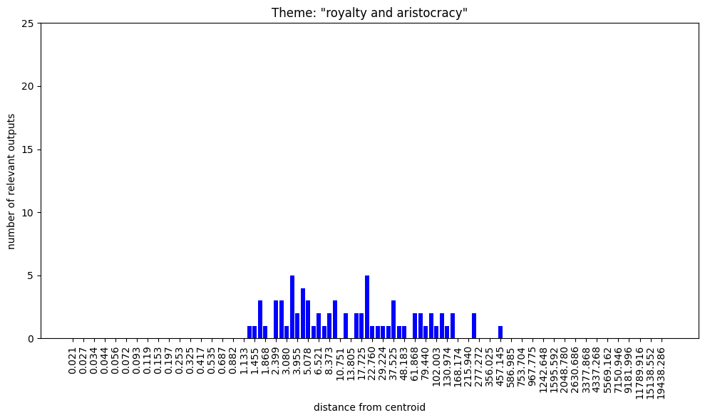 Regarding the bar charts. Understanding that 100 nokens were sampled at each radius and supposing that at least some of the output was mutually exclusive, how come both themes, “group membership” and “group nonmembership” have full bars on the low radii?