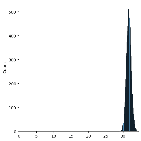 It turns out that (with a few curious outliers) they occupy a fuzzy hyperspherical shell centred at the origin with mean radius of about 2, as we can see from this histogram of their Euclidean norms:
