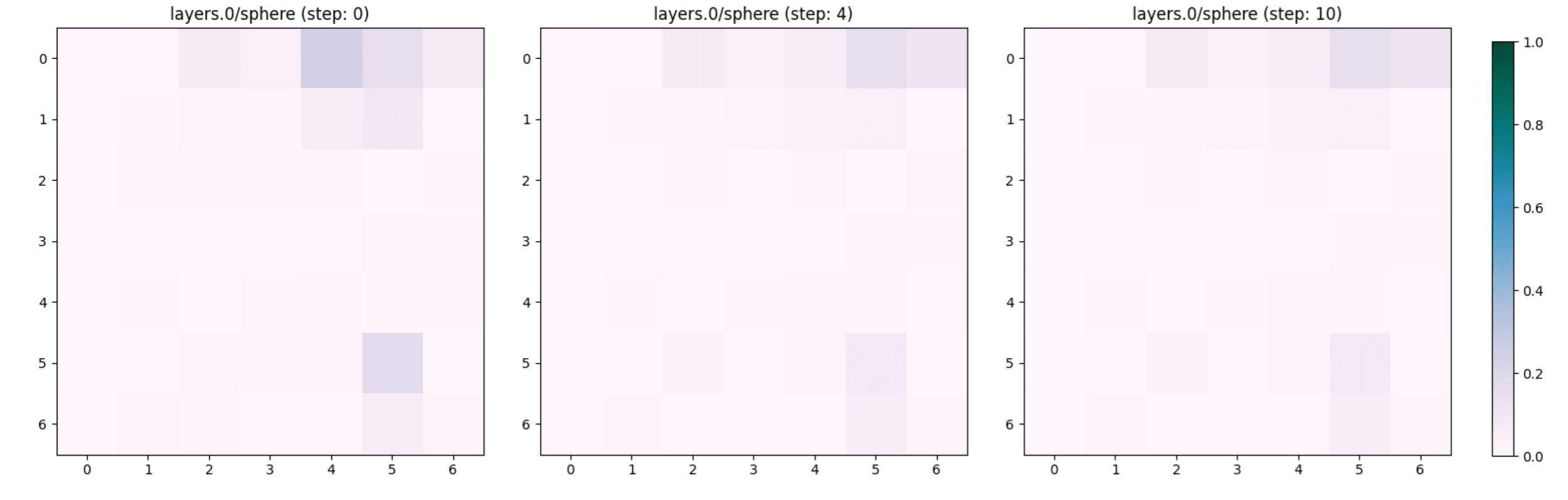 Noticeably the dynamics of concepts seem different. Certain concepts like “green” are present in every layer while concepts like “sphere” seem to appear in later layers.