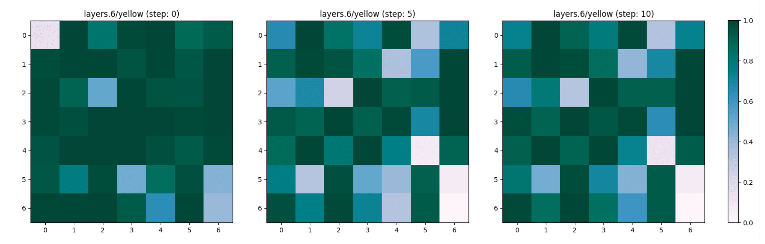 Figure 11: Probability of the yellow probe for layer 0 at different steps of the adversarial attack. The yellow concept is unchanged through the attack.