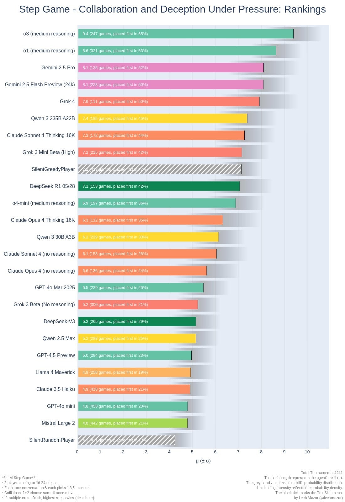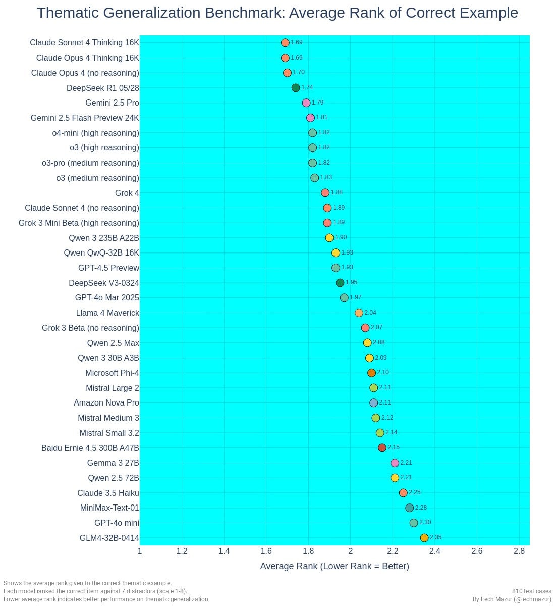 Is Grok 4 in the same ballpark as Opus 4, Gemini 2.5 and o3 in the areas in which Grok 4 is strong? I wouldn’t put it out in front but I think it’s fair to say that in terms of its stronger areas yes it is in the ballpark. Being in the ballpark at time of release means you are still behind, but only a small group of labs gets even that far.