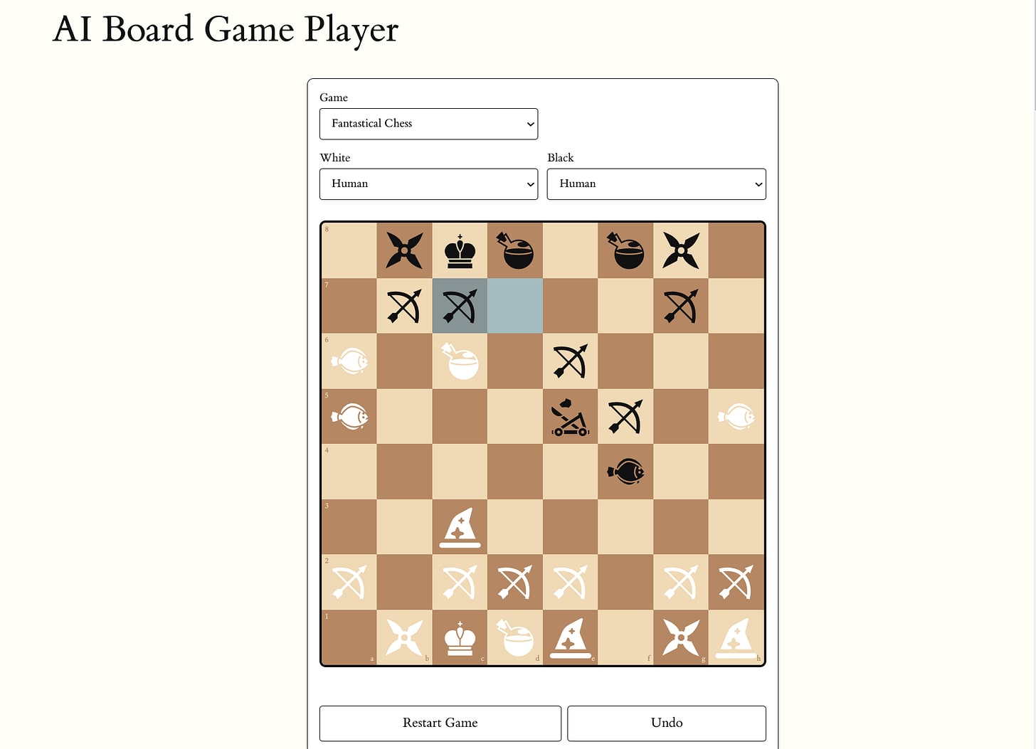 There is a small bug in the web version: if you join two fish to create a shark, the squares with the original positions of the fish remain selected, so it is not obvious whose turn it is now. I think the game froze when I did it for the first time (no side could move), then I undid the move and did it again, the two squares still remained selected, but now the other side could move, and afterwards the fields unselected and the game continued normally.
