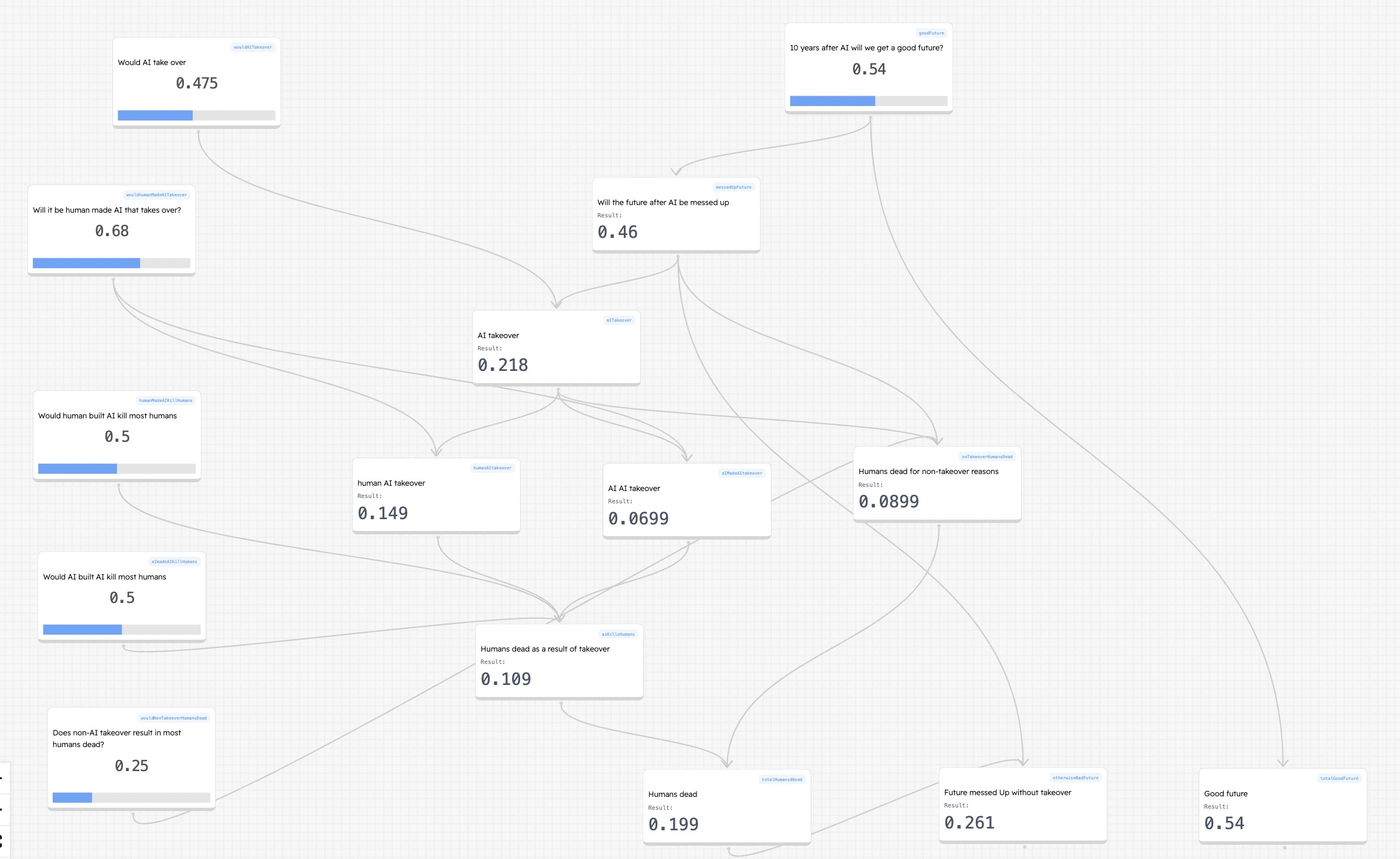 • Probability that most humans die for non-takeover reasons (e.g. more destructive war or terrorism) either as a direct consequence of building AI or during a period of rapid change shortly thereafter: 9%