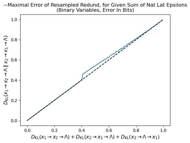 Interesting additional piece for future reference: If we include the mediation condition into the denominator, and so look for a bound in terms of a factor of the sum of all natural latent condition epsilons, we find that the empirical factor in question is 1 (roughly. Not sure what happened at ~0.4):