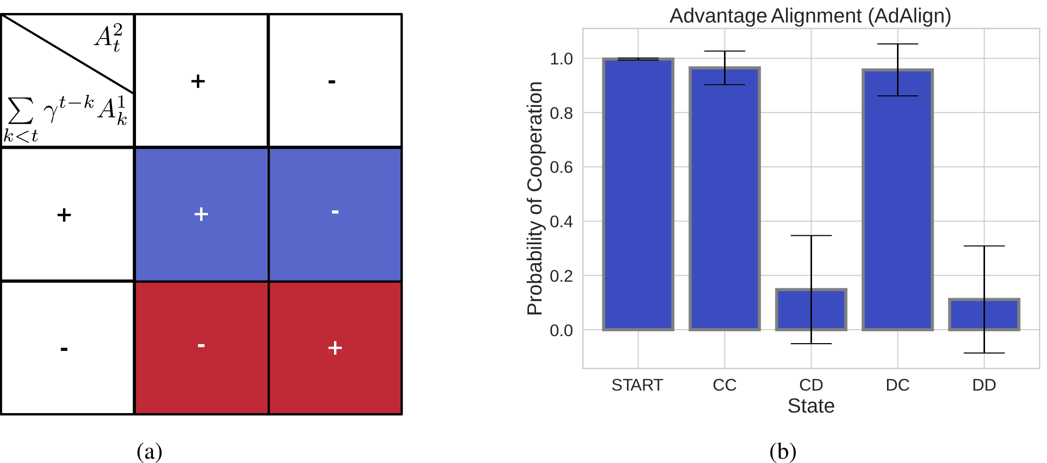 A key simplification came from Duque et al. (2024), who introduced Advantage Alignment at ICLR 2025, showing that the entire complex machinery of LOLA could be distilled into a simple, elegant mechanism based on the advantage function.[5]