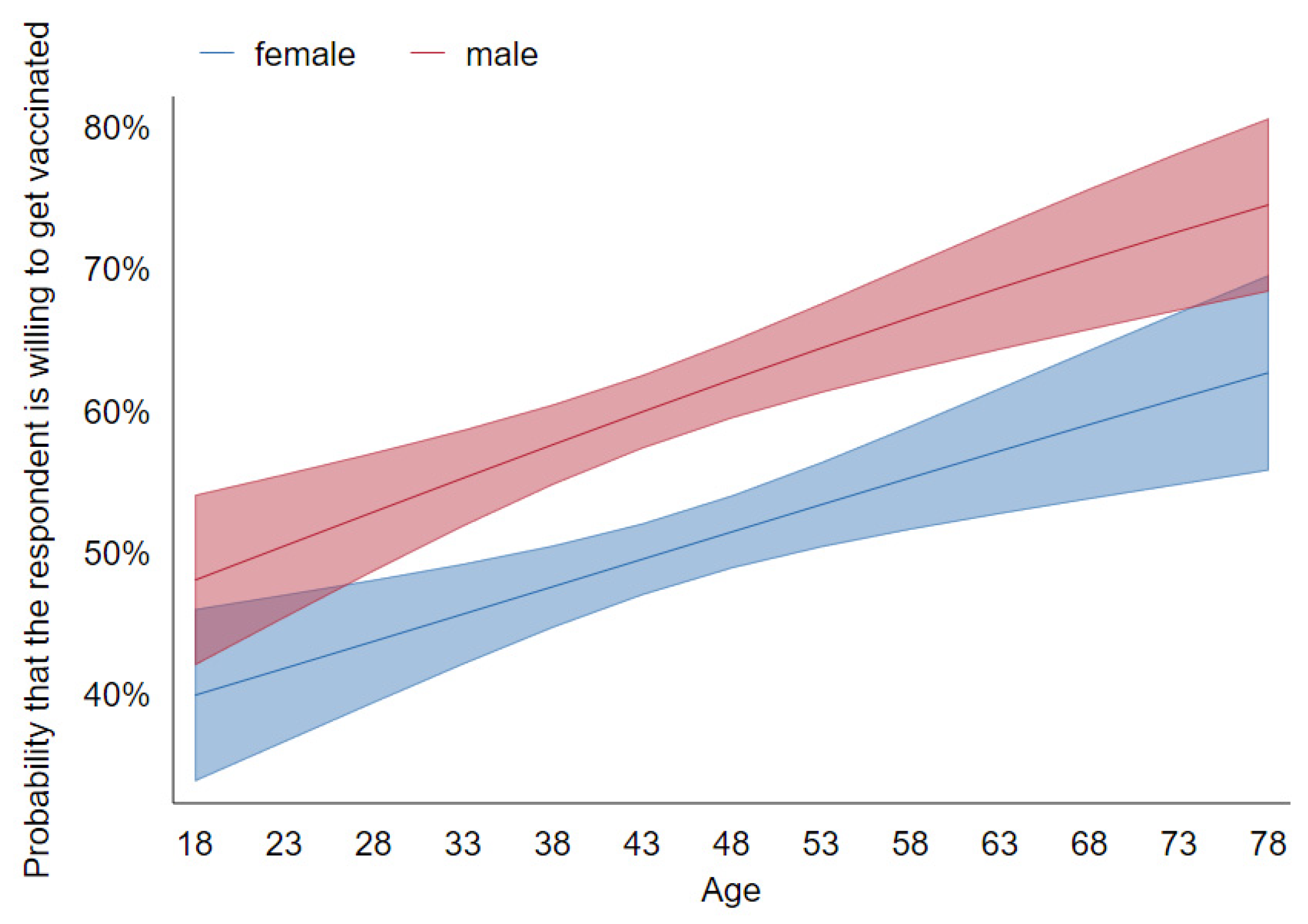 Women were significantly more likely to express a desire to delay or reject the Covid-19 vaccine than men were, which is consistent with the existing literature on vaccine hesitancy.