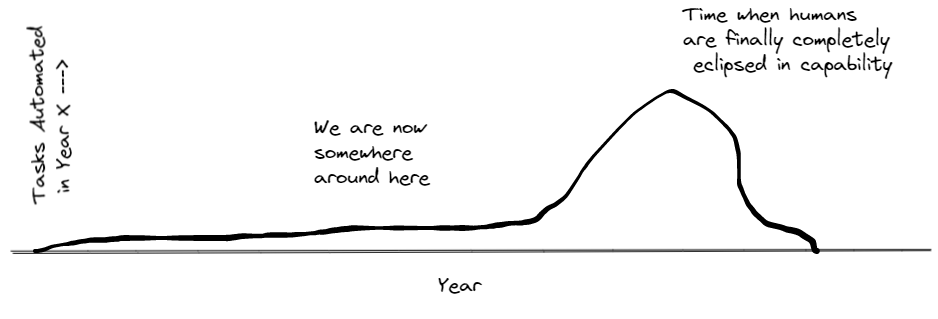 If the history of AIs-surpassing-humans-at-tasks looks like this: