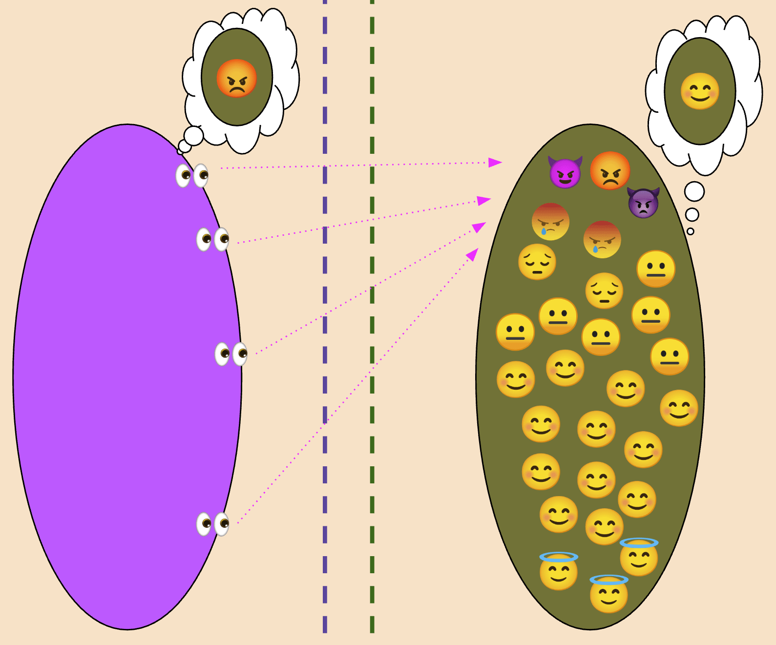 There is a kind of unilateralist’s curse for perception of hostility. On the Purple side, there will be a distribution of perception biases; some Purples will be more biased away from seeing hostility in the Greens, some more biased towards seeing hostility. For the Purples most biased towards seeing hostility, they’ll feel justified in some degree of escalation themselves. Then Greens will see actual escalation from the Purples.
