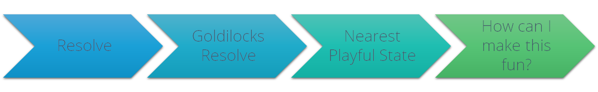Then, we need to figure out how we can get into that playful, creative flow. To do that, we have to ask ourselves “What’s the nearest state to the one I’m feeling right now that would allow me to enjoy the task?”, then “What single aspect of the task could I focus on or change to get me to that state?” This is called the Play Maker.