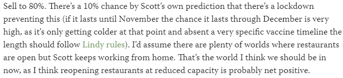True. I essentially say ‘I think this is higher than 90% but for various reasons it’s tough to bet things up higher than 90%.’ In hindsight this is so high a threshold it’s essentially a Can’t Happen, but given information at the time I don’t think 90% is crazy low – it’s plausible 95% is a better prediction but I don’t think more than that would have been wise.