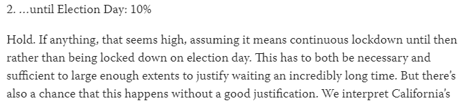 True. I stand by this being a substantial underdog for exactly the reason I noted, which is that this is a parlay of several things that each must happen – we need to go under the bar, then back over the bar, on multiple fronts. There were Major Lockdowns each month, but it’s not clear there were ‘more major lockdowns’ each month, so I do think technically this evaluates to true as written, but as far as intent it’s not clear to me this fully happened because it’s not clear lockdowns sufficiently lifted. Parlays are hard to win!