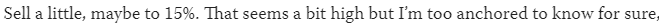Sell to 15% or so, while noting that I think the chance of it actually being effective is much higher than that.