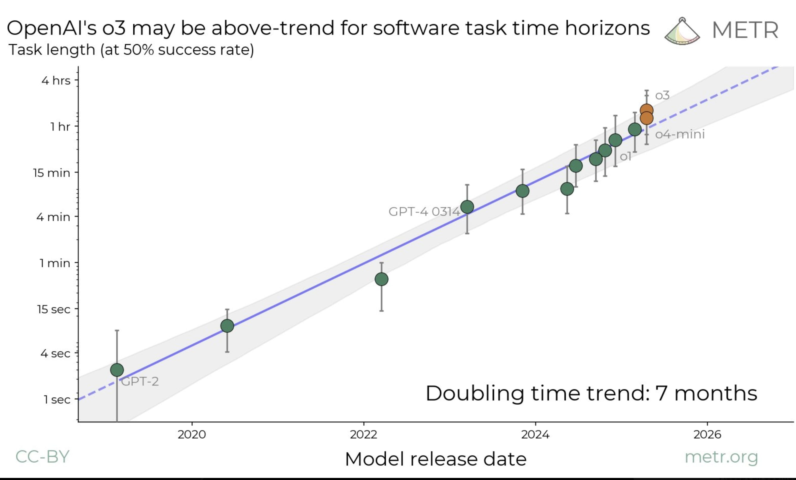 It’s interesting that their doubling time varies between 7 months and 70 days depending on which tasks and which historical time horizon they look at.